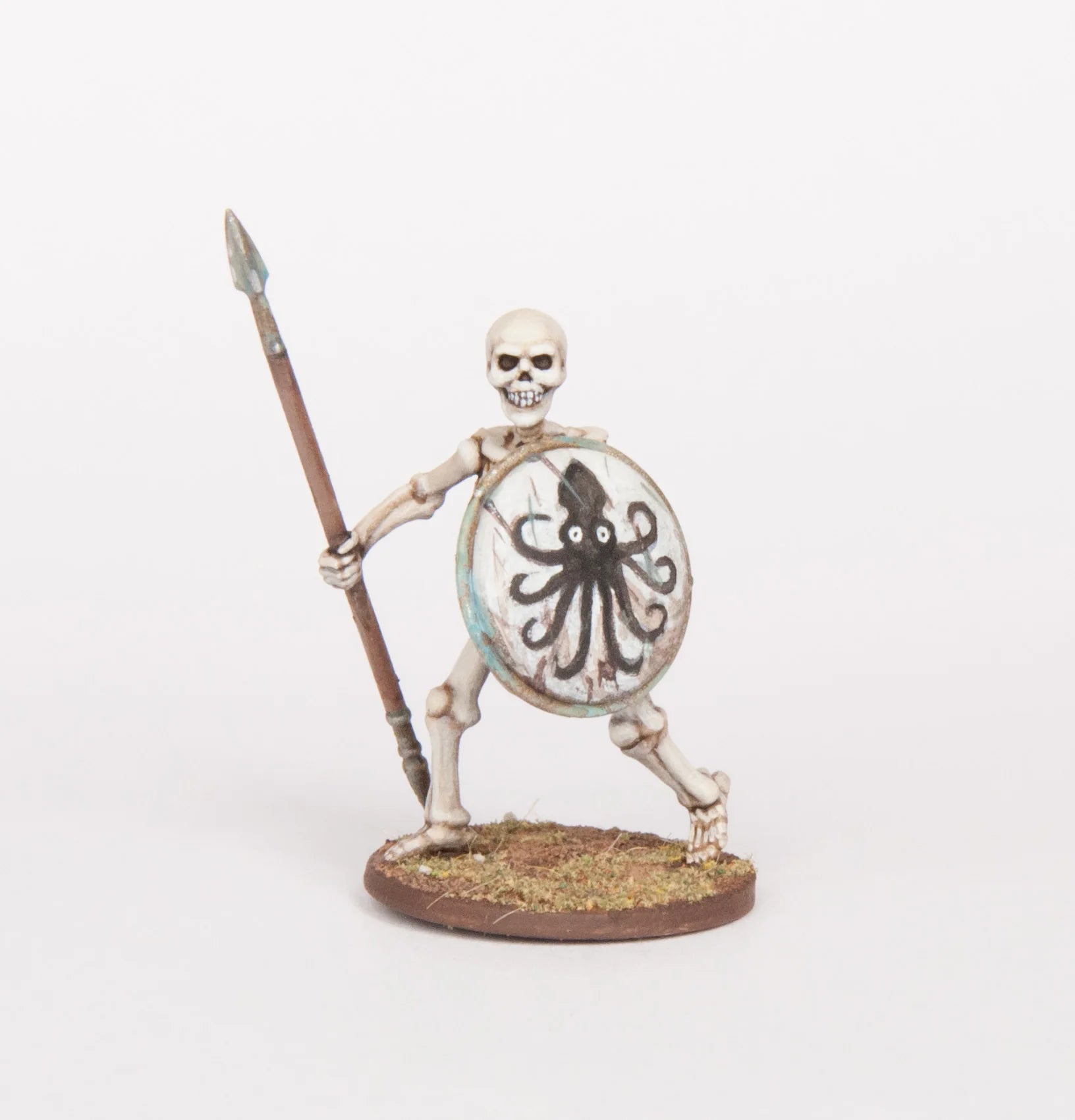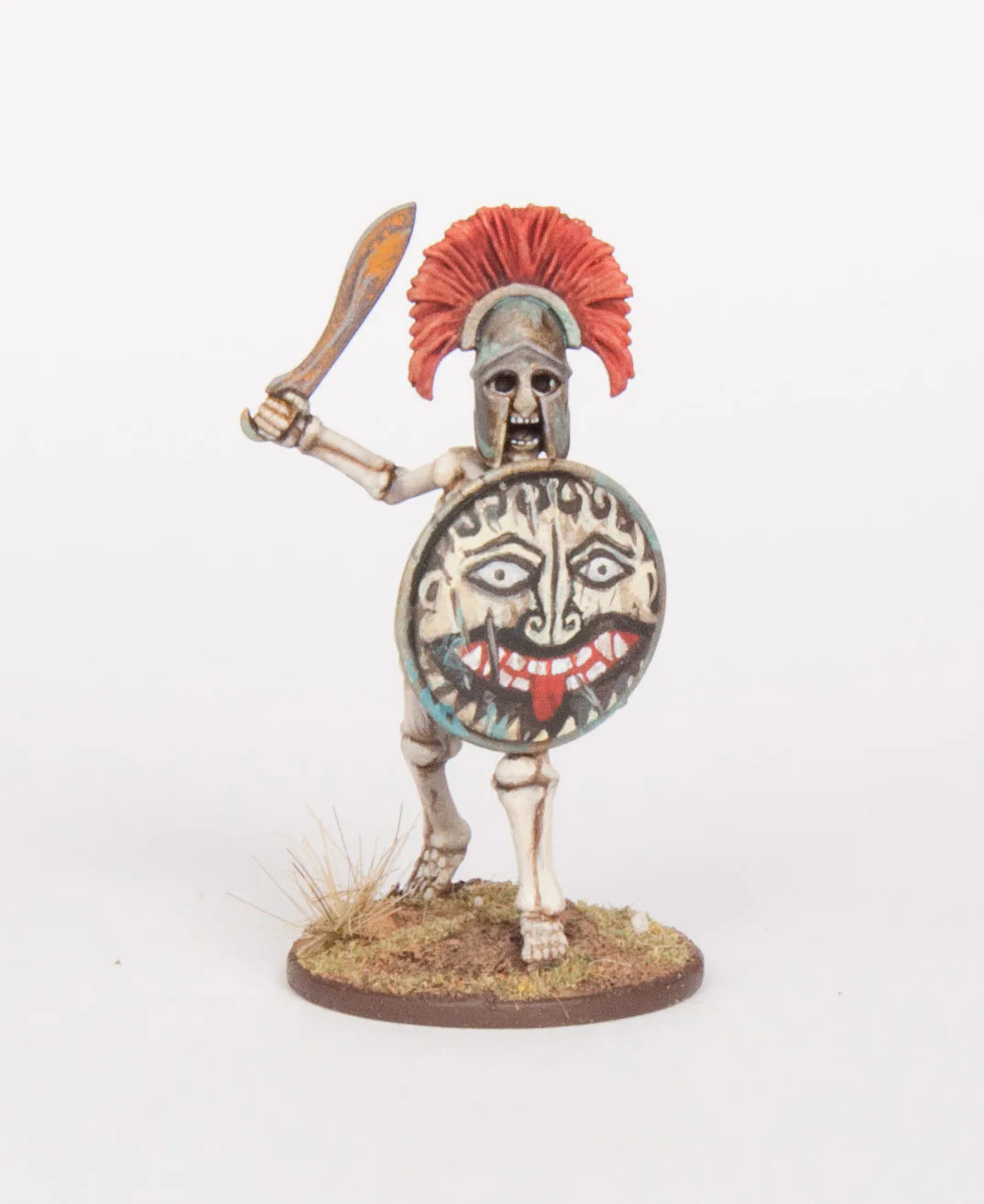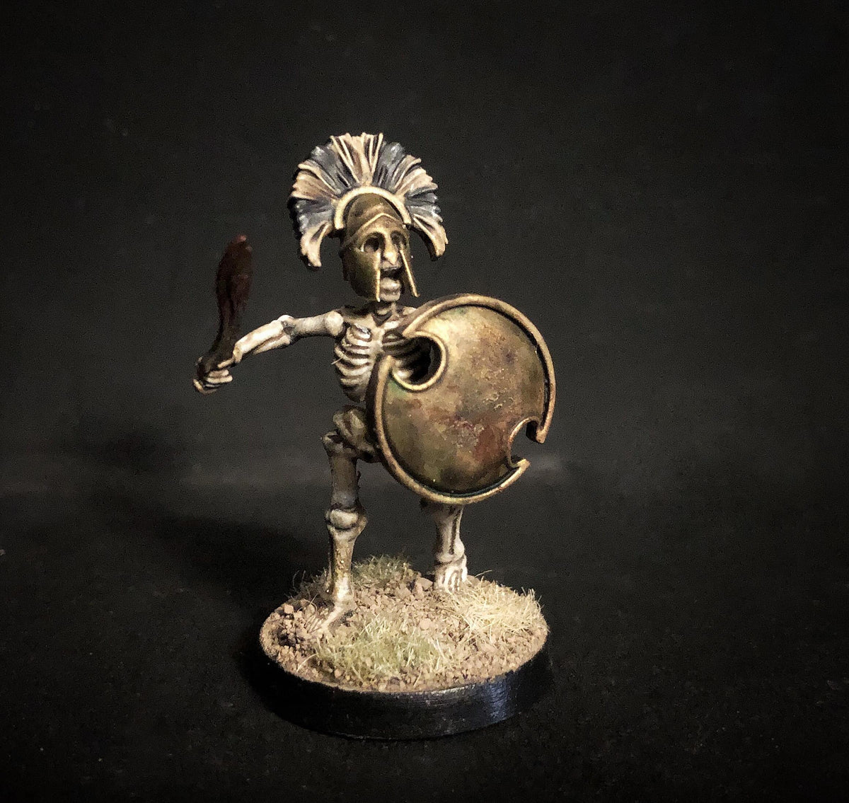 They are the shades of the men of Sparta, Athens, Thebes, and Macedon. When a Necromancer plunders the coins meant for Charon, she can reanimate their remains and bind them to her will. Only by removing the skull from the body, or destroying the coins, may the warriors break their curse and return to the grave.