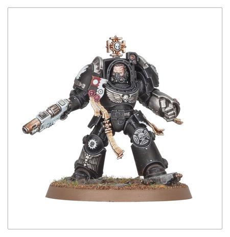 Space Marine Captains fight from the front, and few forms of armour enable them to do so as effectively as Terminator plate. This formidably resilient suit protects the Captain against all but the most devastating enemy fire, and allows them to deploy by teleport strike right into the heart of the foe.