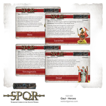 To lead your warband, you'll need powerful heroes. Vercingetorix of the Arveni tribe was a Gallic Chieftain who united the tribes of Gaul to repel Caesar's invasion of 52BCE. Lucterius fought against the Roman empire until the climax of the Gallic Wars at the Siege of Uxellodunum. You can also field a druid; these highly revered spiritual leaders can be used to bolster your troops' morale. These heroes provide a suitable centerpiece for your warband, and prove a formidable fighting force in their own right.