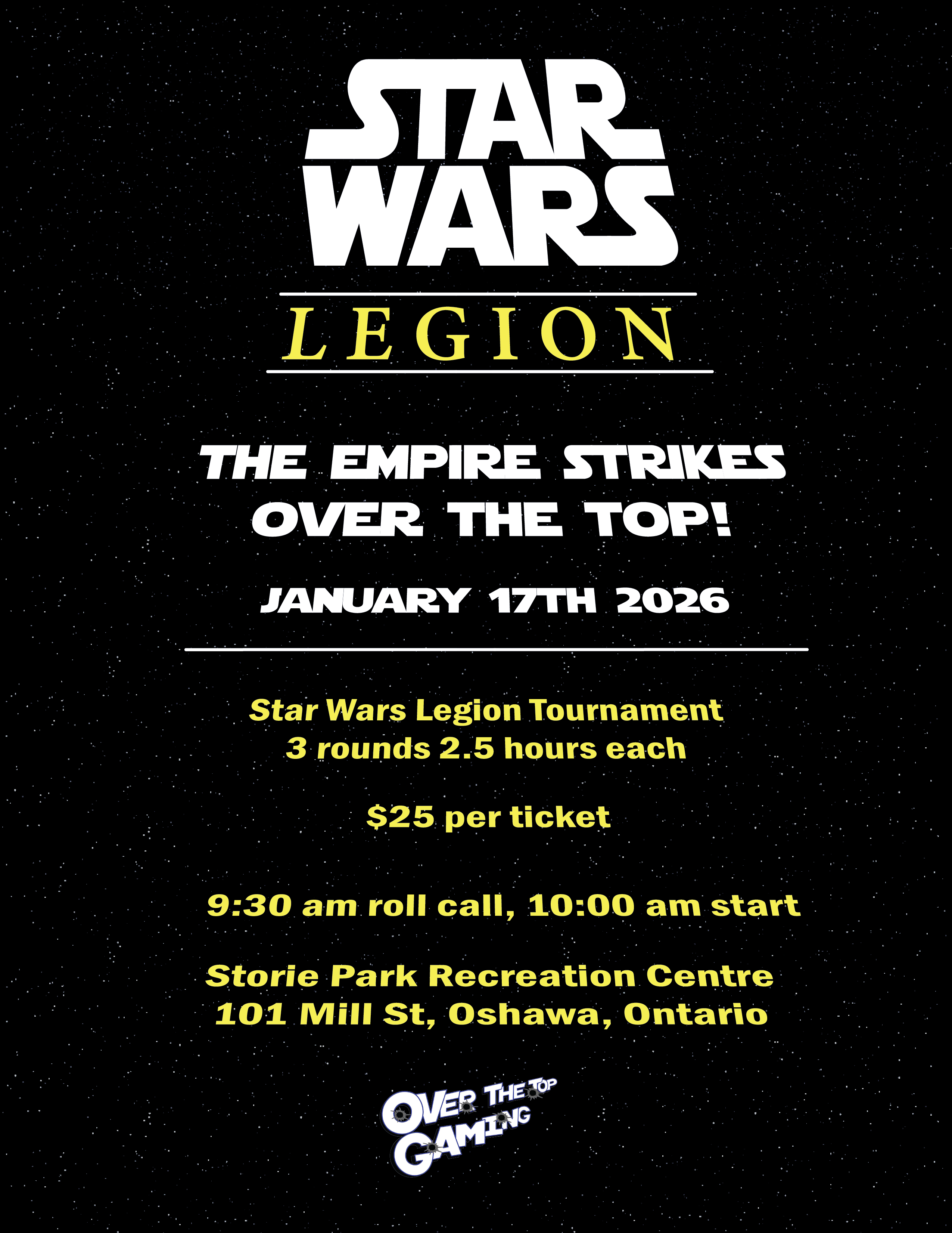 Star Wars Legion - The Empire Strikes Over The Top! Tournament January 17th 2026
