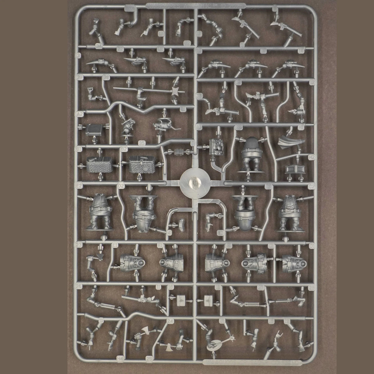This plastic box set includes enough parts to build a complete Crusader Command Team, including Officers, Standard Bearers, Musicians, and various support specialists, providing everything needed to lead a Crusader force into battle!