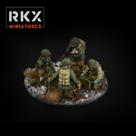 3D Printed US Winter 60mm Mortar Team. Contains 5 models and bases.
