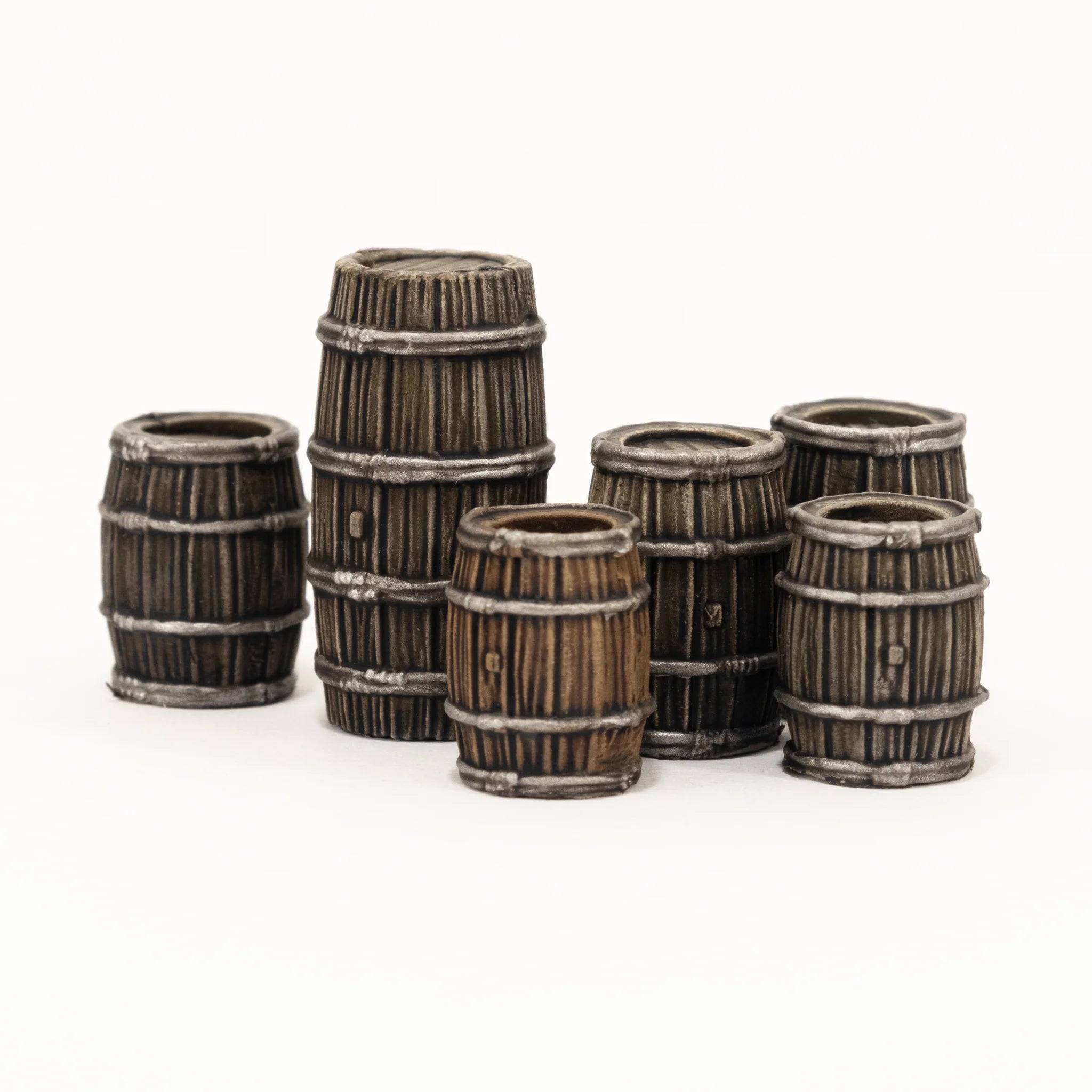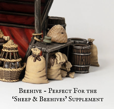 From tables and stools to baskets of food, cooking pots, and serving dishes, this kit provides everything needed to create a lively marketplace or camp supply area. Ideal for use with Pillage or any historical or fantasy setting.