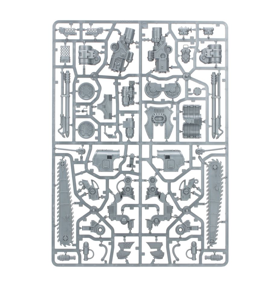 This multipart plastic kit builds one Cerastus Knight Acheron – a terrifying war engine that reduces all opposition to ashes. Even taller than its Questoris-class cousins, the Knight Acheron strides across the battlefield unleashing bursts of baleful fire from its arm-mounted flamestorm cannon and shredding tougher enemies with blows from its wicked reaper chainfist.